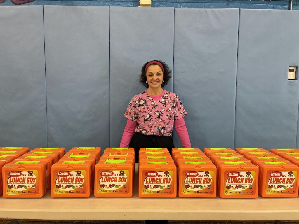 Lessons in a Lunch Box was developed 16 years ago in Baltimore, Maryland by the Children’s Oral Health Institute. Including presentations on brushing and other dental care techniques, as well as healthy eating, the centerpiece of the program is an orange-colored, specially designed lunchbox that every child brings home.